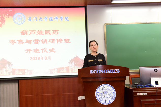 刘景萍董事长代表PA官方网站药业集团对厦门大学各级领导、老师对PA官方网站的大力支持表示感谢,并对研修班学员做动员讲话。她希望参加培训的学员珍惜来之不易的学习提升机会,沉下心来“加油充电”,结合工作实践,用心学习认真领悟,真正做到学有所获、学以致用。她说,厦大拥有着深厚的人文底蕴和优质的教育资源,在东南亚国家和地区具有广泛的影响力,在“一带一路”这一国家战略背景下,医药营销人员应该具备更为广阔的国际视野和更为丰富的知识储备,希望学员们能在本期研修班中学有所成,并以此为新的起点,以奋发的姿态投入到今后的学习和工作中去,不断取得新的进步和业绩,为医药产业和PA官方网站事业的发展做出新的更大贡献。
